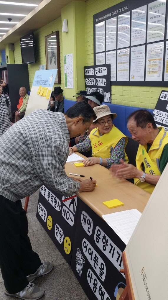 배려하는 선배시민 문화와 교통안전 중요성을 알리는 인식개선 캠페인은 앞으로도 계속 됩니다. 캠페인 진행의 주인공은 서울노인복지센터 회원 어르신이십니다. 앞으로도 적극적인 참여 부탁드립니다.