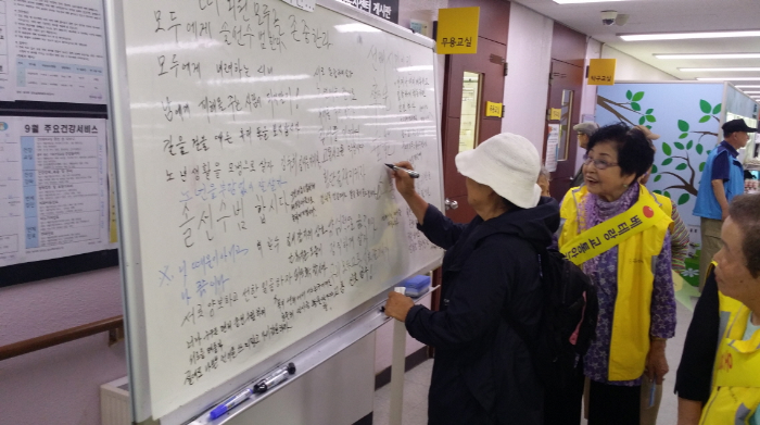 센터 어르신들은 다른 회원을 위해 배려하는 마음으로 실천하시는 분이신 것을 잘 알 수있는 시간이였다. 캠페인을 진행하시는 어르신들도 힘들지만 밝은 얼굴로 서울시민과 센터 회원분들께 다함께 배려하는 문화와 교통안전 준수의 중요성을 전파하는데 열심이셨다. 그리고 동참하신 어르신들도 수고한다는 격려와 함께 적극적으로 동참해주시는 미덕을 보여 주셨다.