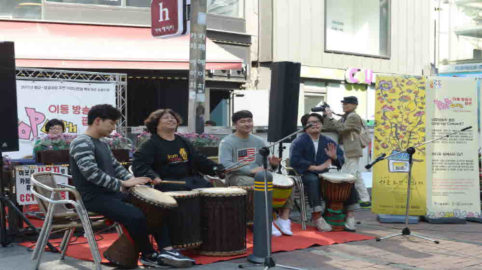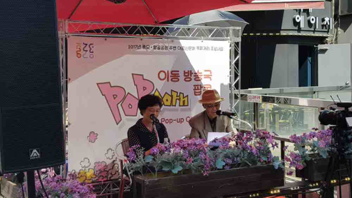 이동방송국 팝콘은 DJ참여자들과의 소통방송, 노인 정보제공, 연주공연 등의 내용으로 진행하였습니다.