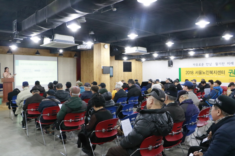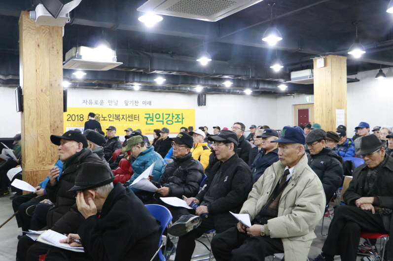 서울노인복지센터에서는 어르신의 권익을 보호하기 위해 ‘권익강좌’를 매월 마지막 주 수요일에 정기적으로 진행하고 있습니다.
