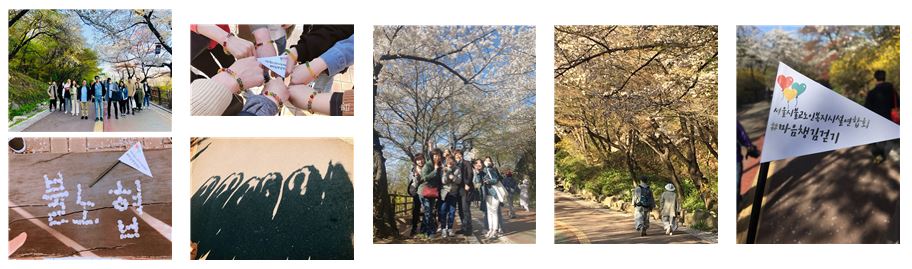 예쁜 봄꽃을 배경으로 단체사진을 찍은 후, 본격적인 마음챙김걷기가 시작되었습니다.