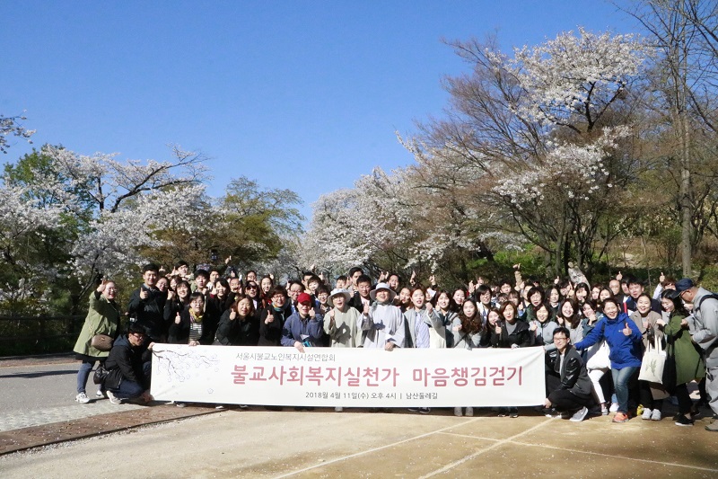 이날의 행사는 서울시불교노인복지시설연합회와 불교상담개발원의 업무협약을 통해 불교계 자원 네트워크를 강화하고, 마음챙김걷기로 사회복지실천가들 간 상호지지망을 형성하여 불교노인복지 실천에 더욱 정진하고자 하는 취지에서 마련되었습니다.
