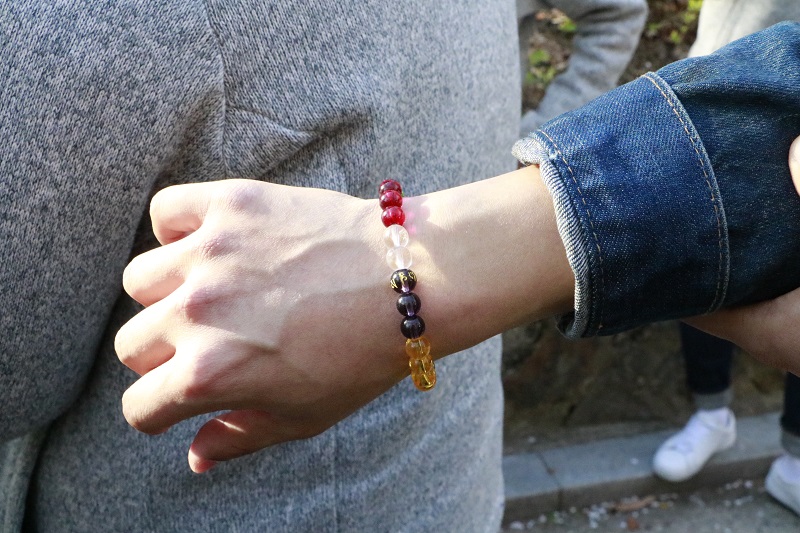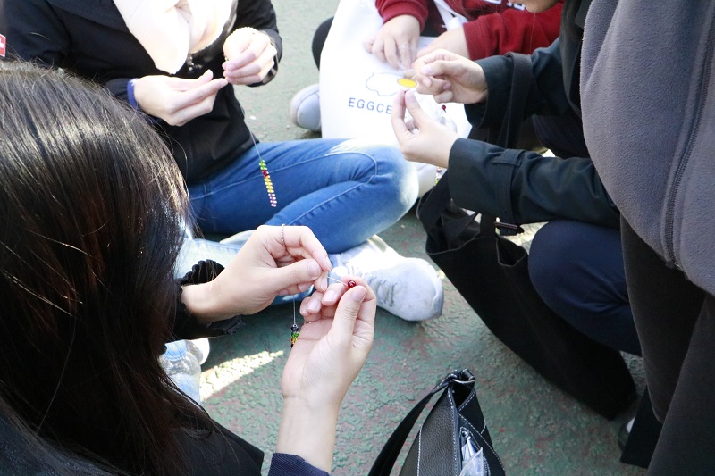 30여 분이 지난 후에는 묵언을 풀고 사회복지실천가들 간 적극적인 교류의 시간이 이어졌습니다. 각 기관별로 각기 다른 색의 염주알을 나눠주고, 명함과 함께 자신의 염주알을 주고받으며 하나의 염주팔찌를 완성하는 겁니다.