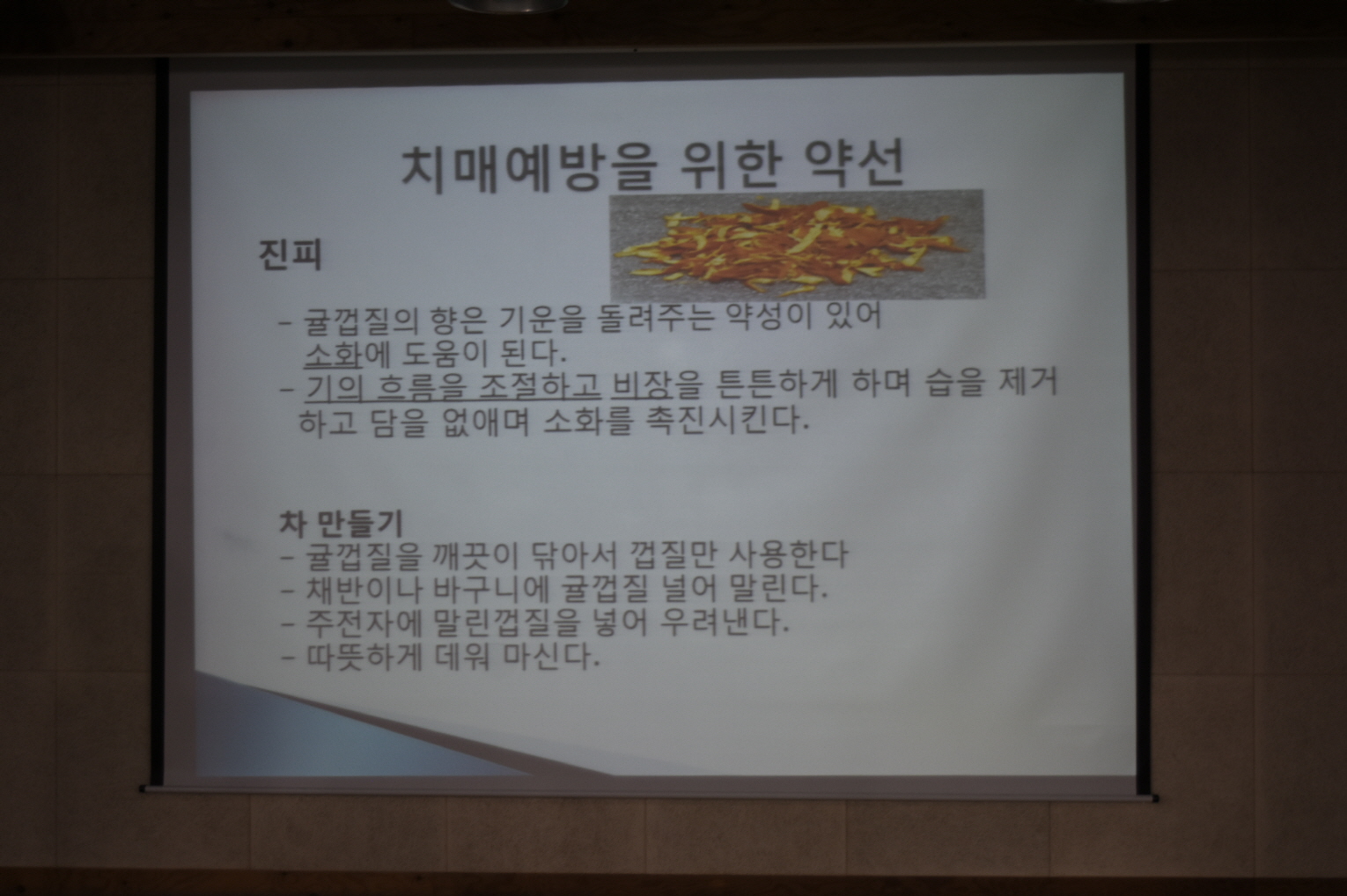 치매예방에 좋은 약선음식에 대한 내용으로 진행되었습니다.