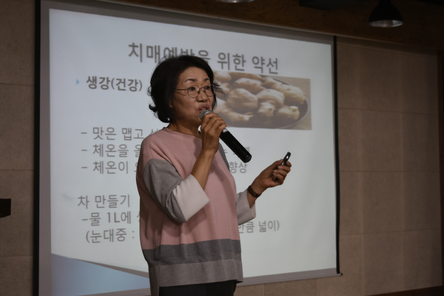 강의는 치매의 종류와 원인, 치매 예방에 좋은 음식, 치매예방을 위한 식생활 지침,