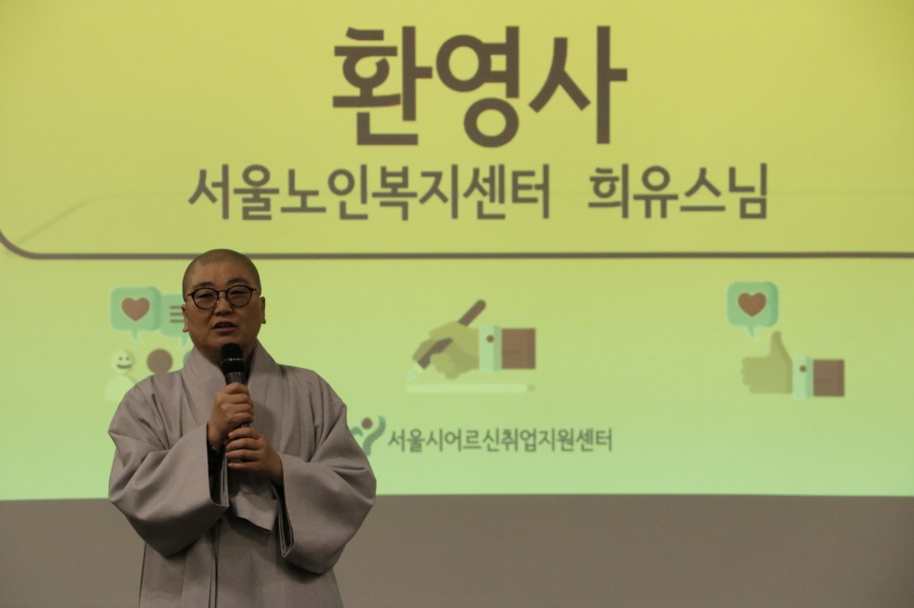 서울시어르신취업지원센터 센터장의 환영사로 워크샵의 1박2일의 일정이 시작되었습니다.