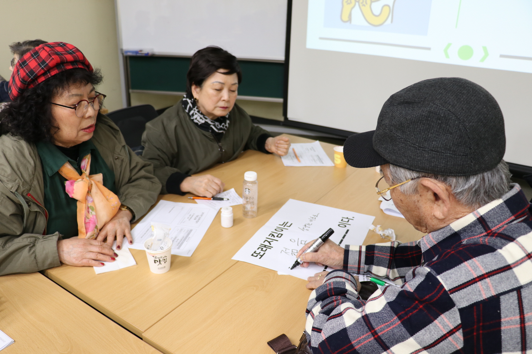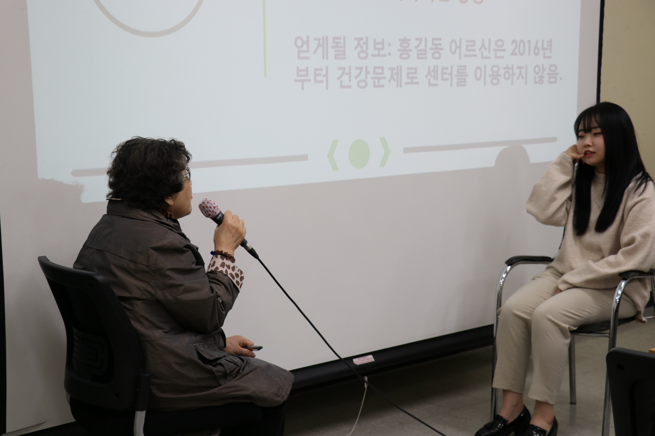 또래지킴이를 3년 연속하고 있다는 한 어르신은 "이번 교육이 앞으로의 활동에 많은 도움이 될 것 같다. 동년배로써 센터를 이용하는 어르신들이 우리를 통해 많은 도움이 될 수 있도록 노력해야겠다고 느꼈다."고 소감을 전했습니다.