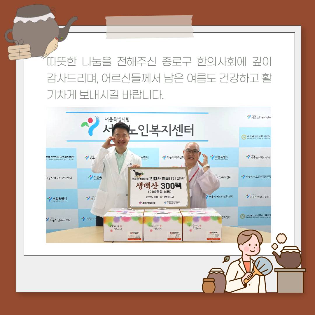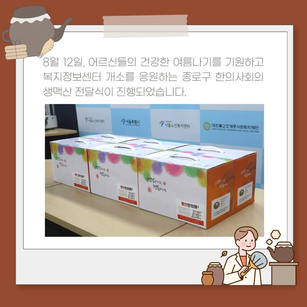 [기획개발팀] 종로구 한의사회 " 건강한 여름나기 지원" 생맥산 전달식