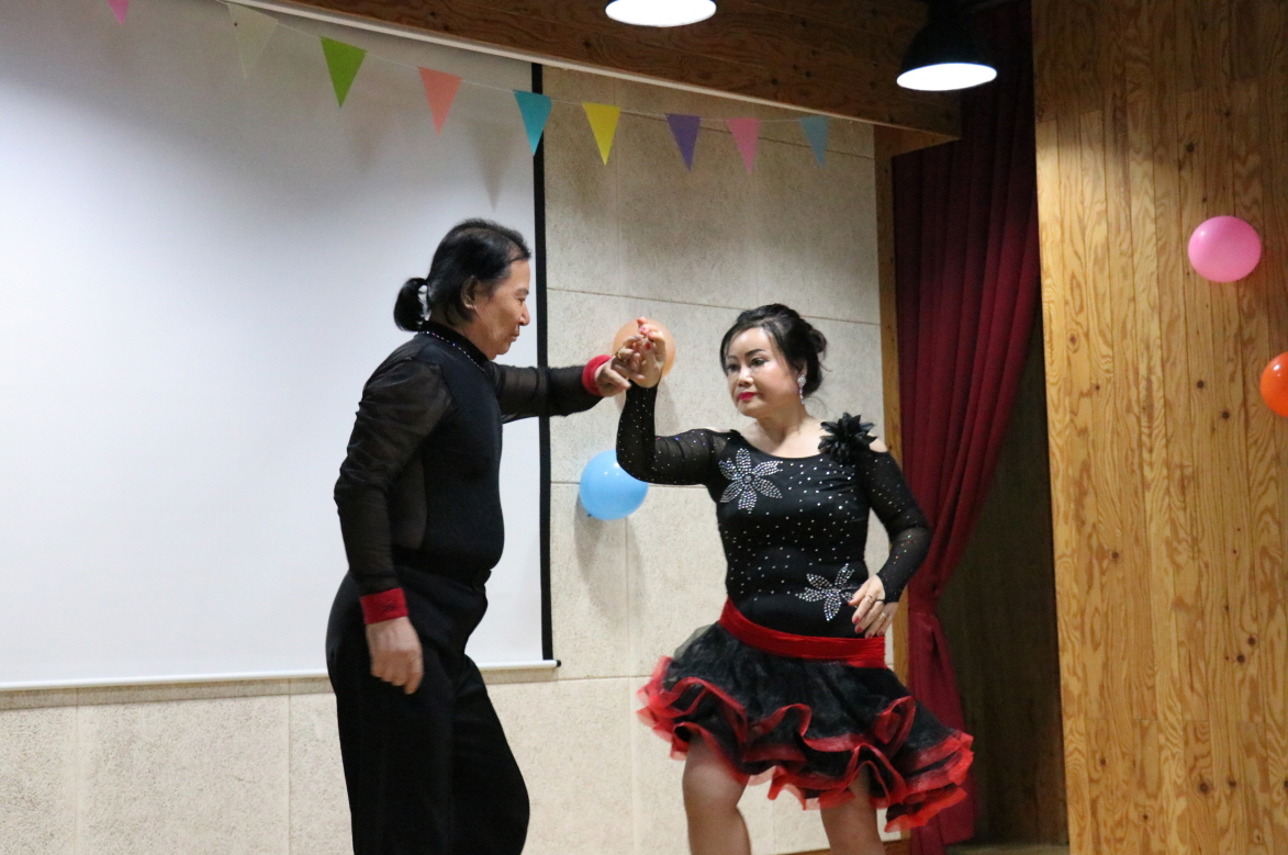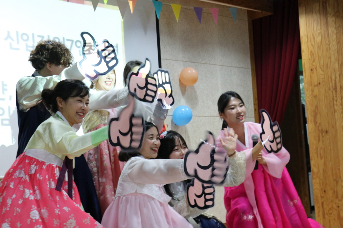 평소 센터에서 사회복지사의 평상복만 보다가 한복을 입은 직원들의 모습을 보며 많은 어르신들이 흐뭇하게 웃으며 “너무 보기 좋다.”, “예쁘다.”라고 이야기해주셨습니다. 어르신들의 응원에 힘입어 직원들이 엄지 척! 공연을 진행하였습니다.