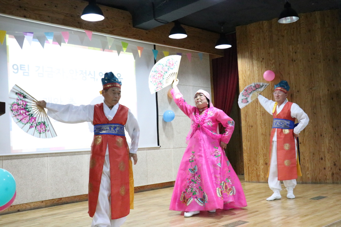 (한국의 민속무용인 한량무 공연을 펼치는 어르신들)