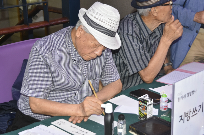 서울노인복지센터 서예 동아리 어르신들의 재능 나눔으로 센터를 이용하시는 어르신들에게 명절의 의미를 되새기고 감사한 마음을 전하기 위해 지방 써주기를 진행하였습니다.