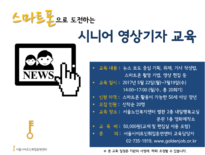 [취업훈련센터] 시니어 영상기자 교육 수강생 모집 안내_내일행복학교