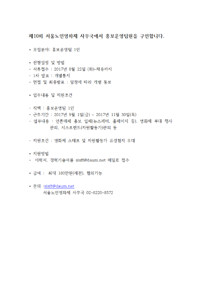 [채용] 제10회 서울노인영화제 사무국 홍보운영팀원 채용 공고