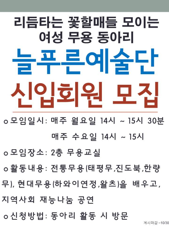 늘푸른예술단에서 신입회원을 모집합니다.