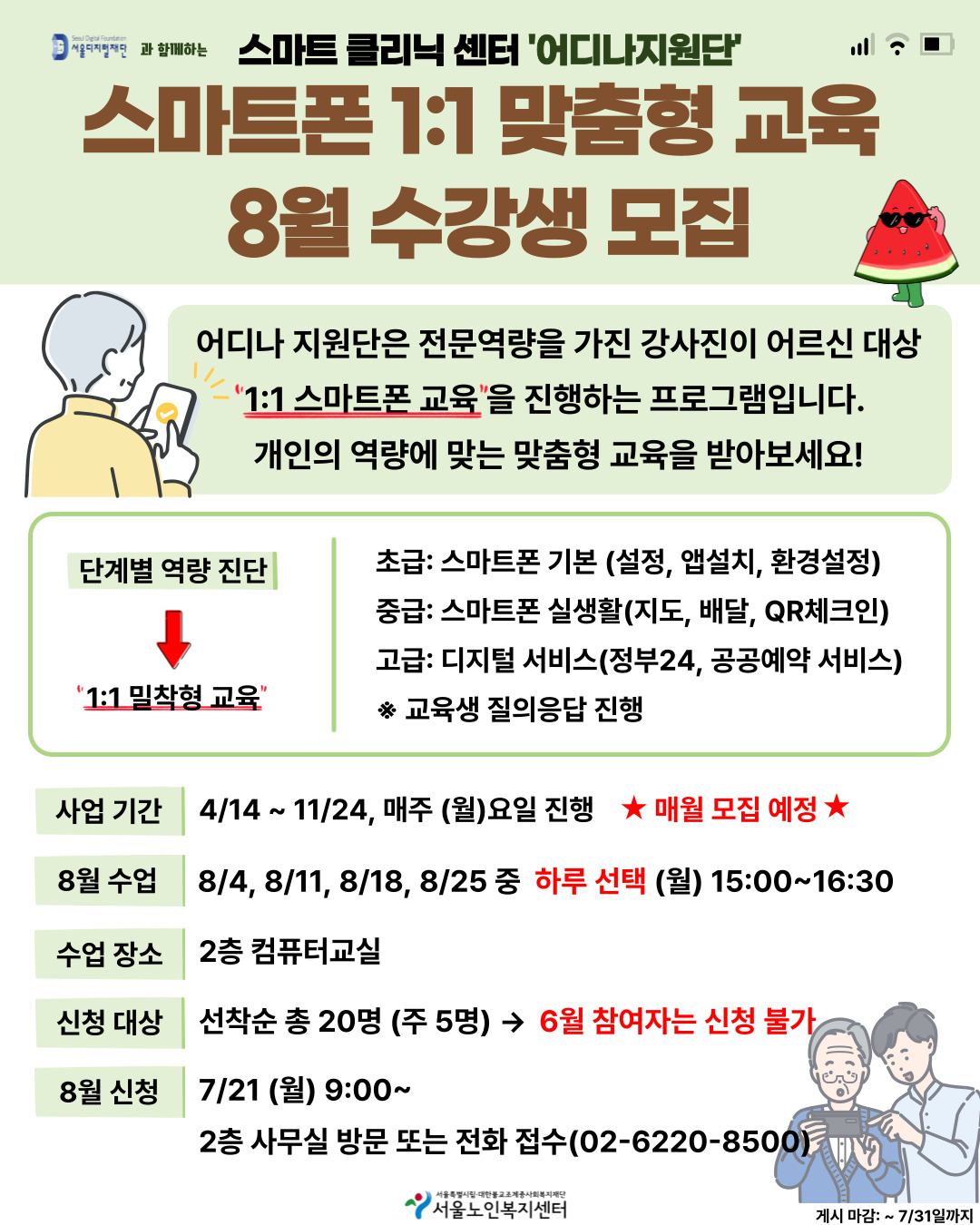[평생교육팀] 정보화교육 1:1 스마트폰 교육 참여자 모집 안내