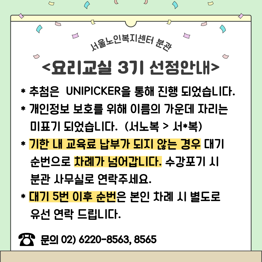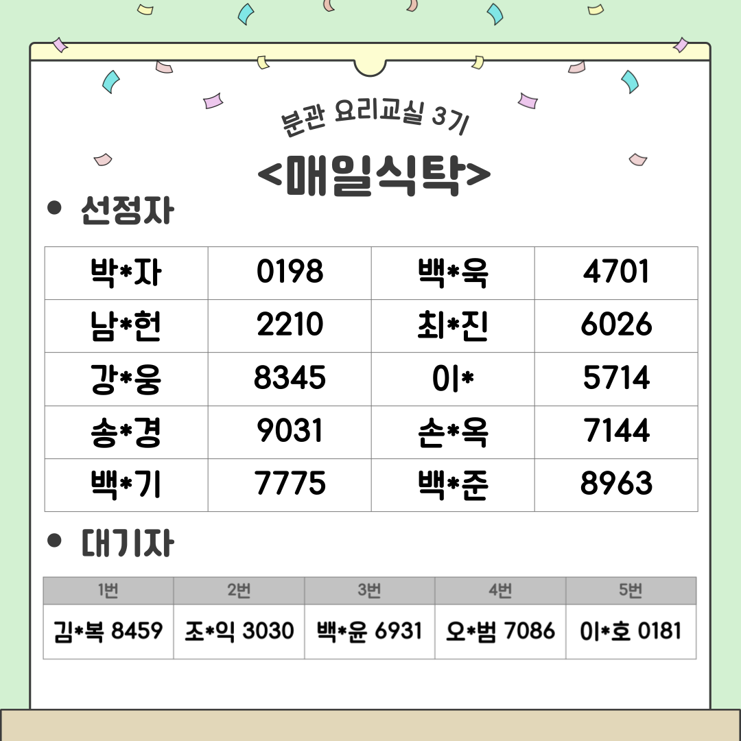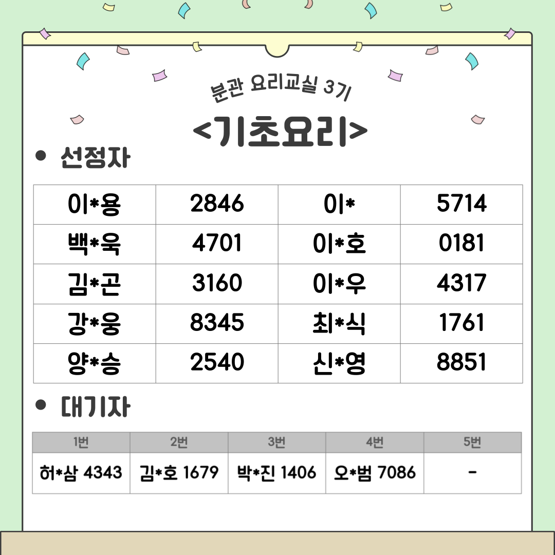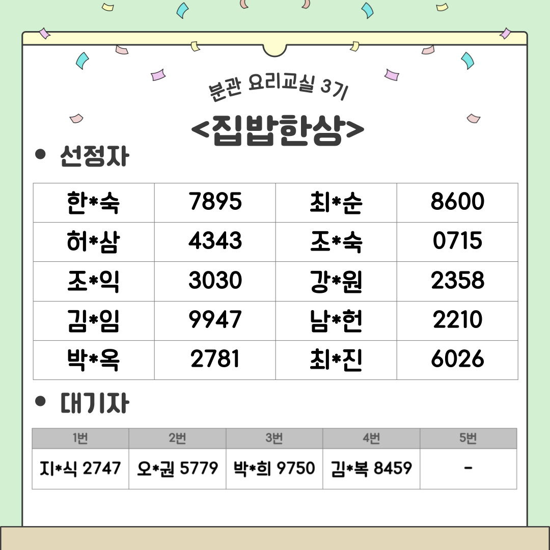 [교육여가문화팀] [분관] 요리교실 3기 선정자 안내