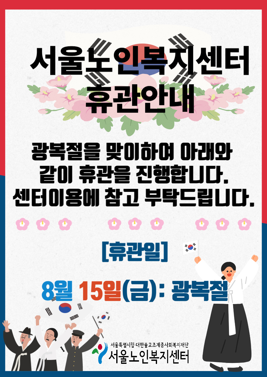 | [공지] | [서울노인복지센터] 설 명절 휴관 안내 |     | 관리자 | 2026-02-13 |