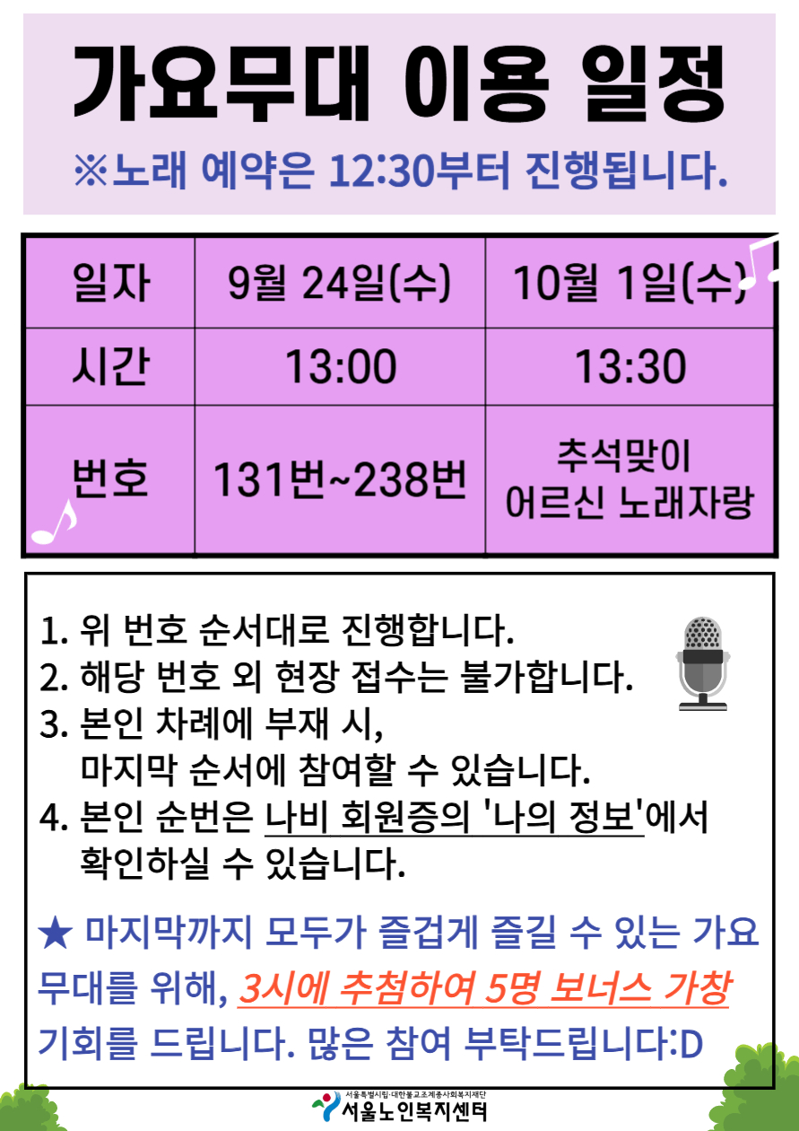 [평생교육팀] 2025 가요무대 이용일정(9/24, 10/1)