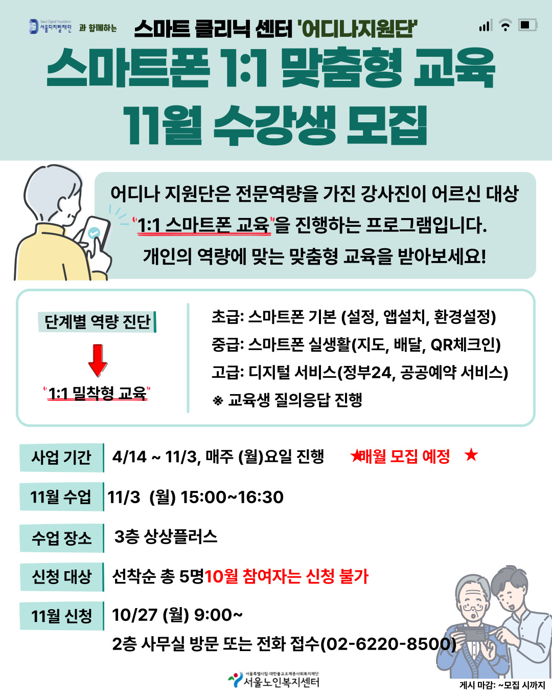 [평생교육팀] 11월 정보화 스마트폰 1:1교육 어디나 지원단 참여자 모집