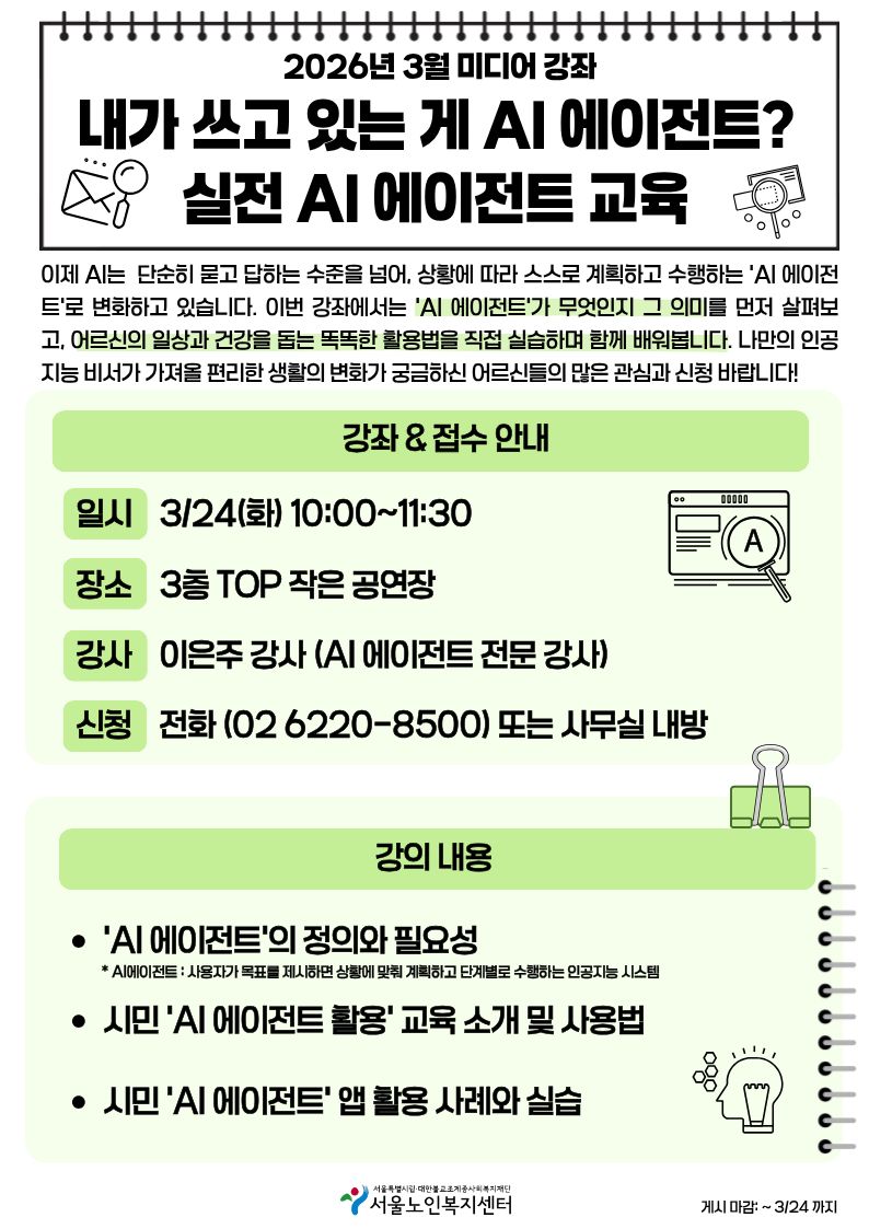 [평생교육팀] 3월 미디어 강좌 '실전 AI 에이전트 교육' 참여자 모집
