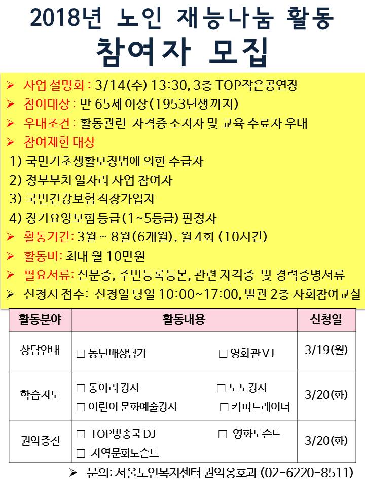 [권익옹호과] 노인재능나눔활동 지원사업 참여자 모집