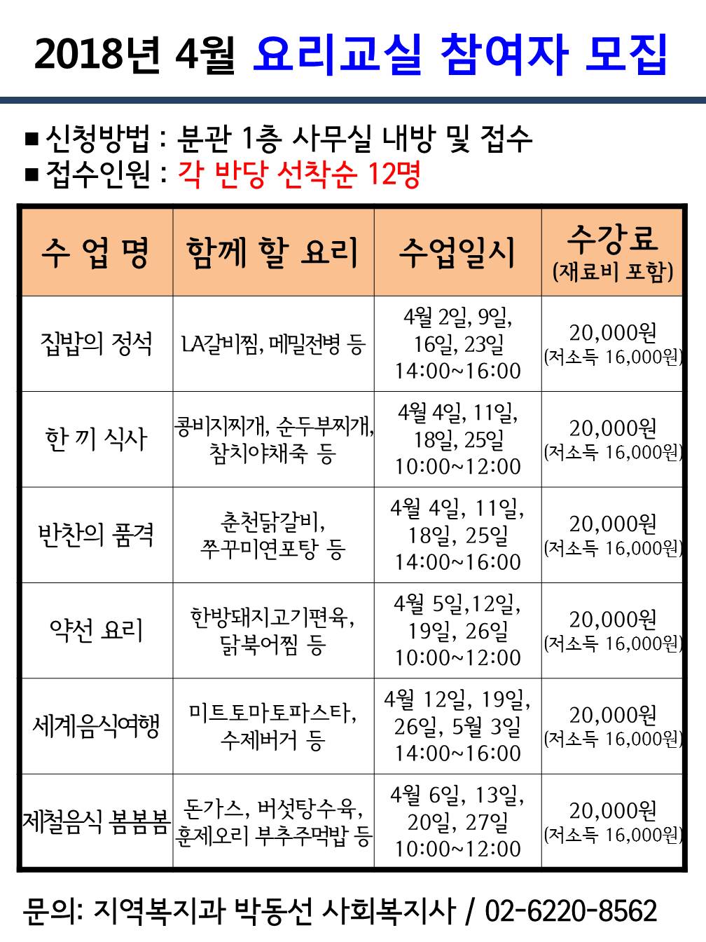 [지역복지과] 분관 4월 요리교실 프로그램 접수 안내
