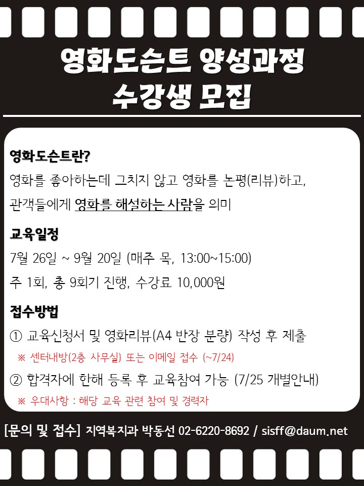[지역복지과] 영화도슨트 양성과정 참여자 모집