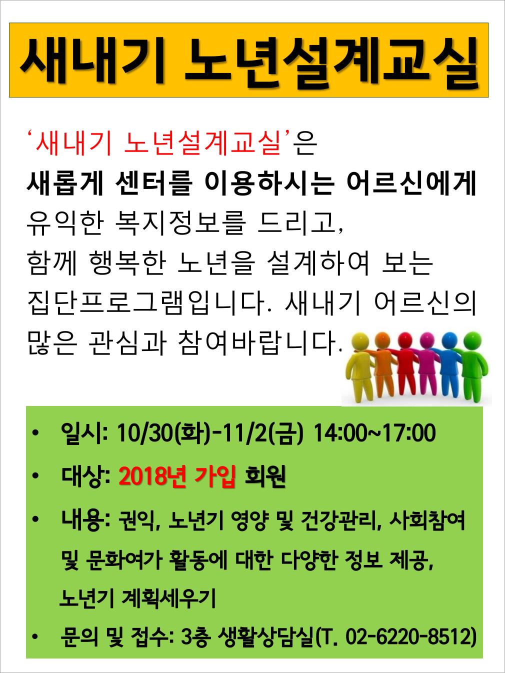 [권익옹호과] 2018년 새내기 노년설계교실 참여자 모집