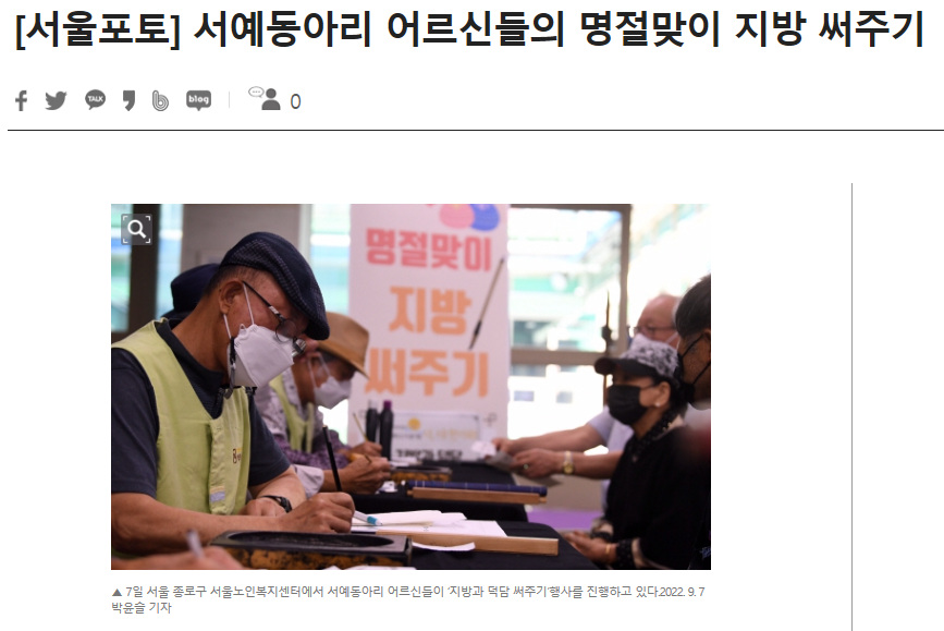 [2022.09.07_서울신문] [서울포토] 서예동아리 어르신들의 명절맞이 지방 써주기