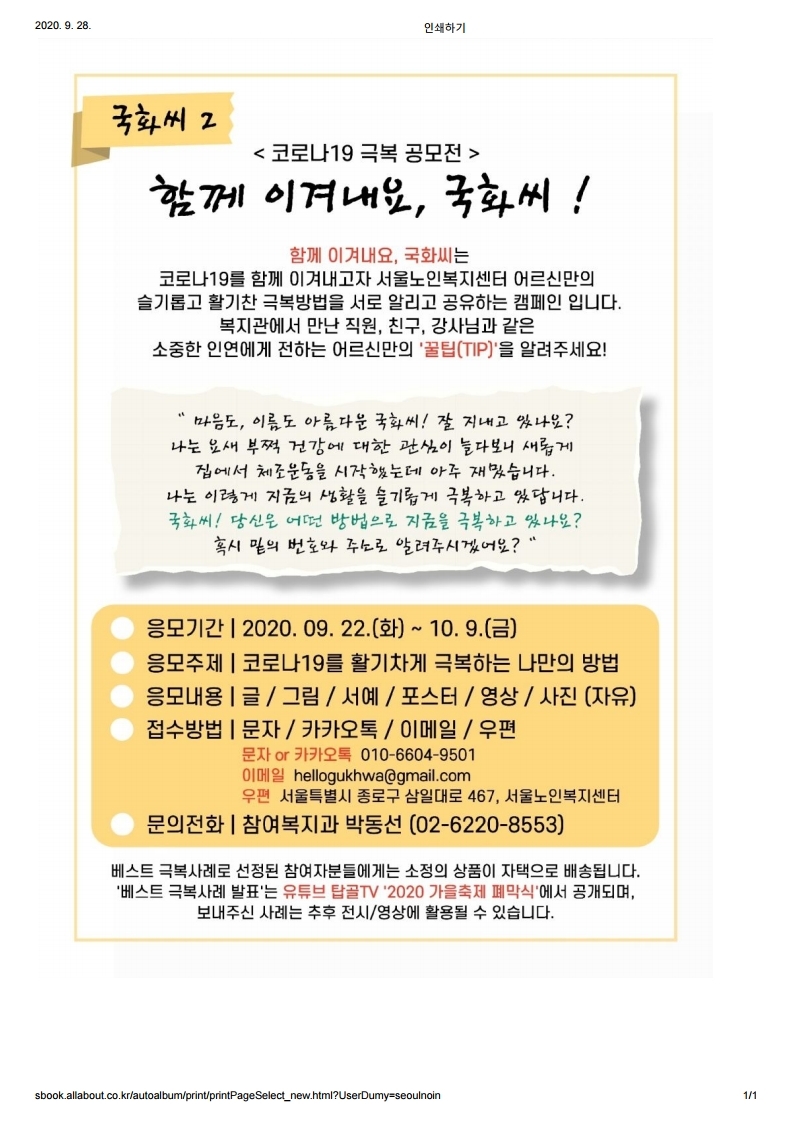 [2020 가을축제 '안녕, 국화씨'] 함께 이겨내요, 국화씨!